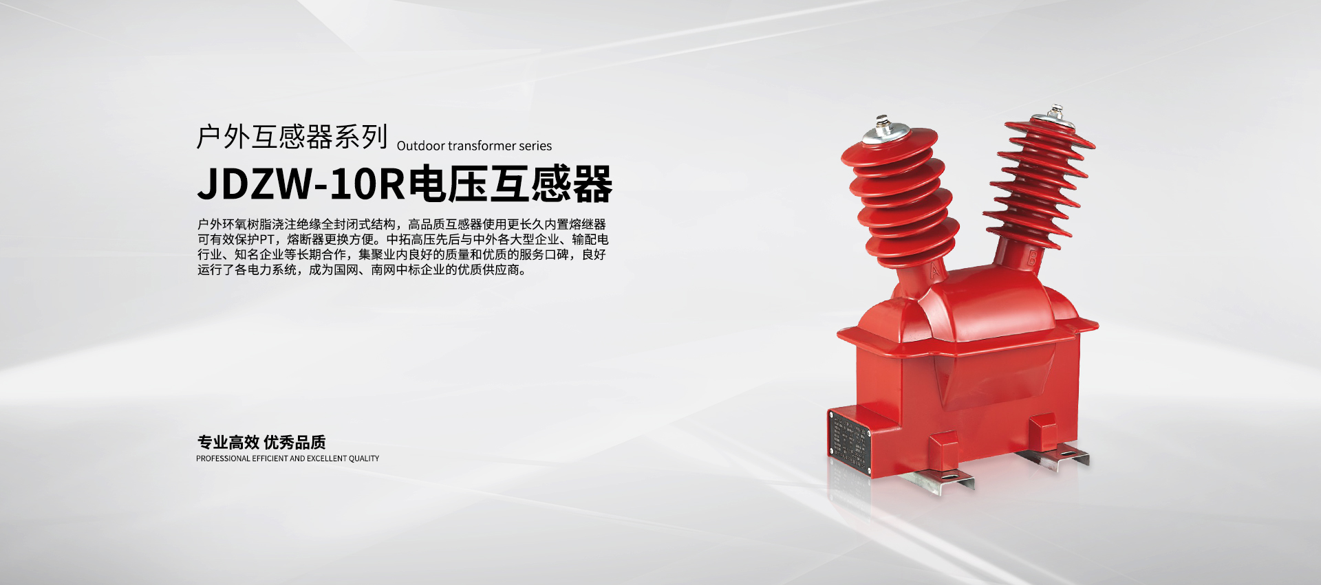 浙江中拓高壓電器有限公司,創建于2006年,是一家專業從事各種先進電流、電壓及一二次深度融合互感器的自主研發、設計、生產、銷售為一體的技術企業。公司位于樂清市經濟開發區。擁有互感器各種設備100多套,擁有多項自主知識產權,獲得多項國家證書。年生產各類10kV及以上互感器50多萬只,是國內智能化互感器主要生產企業之一,參與了眾多互感器的設計、開發和標準指導。